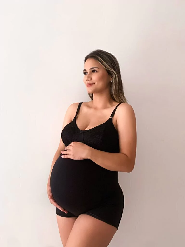 Tecido da barriga em Laycra para acompanhar todo crescimento da barriga sem apertar.