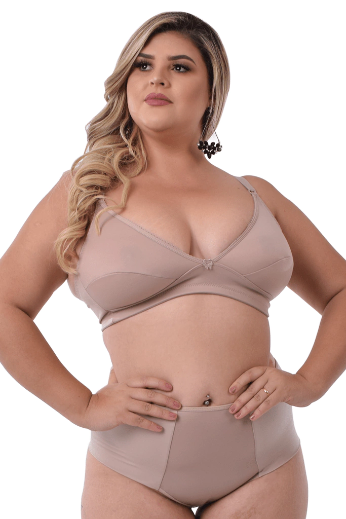 Sutiã reforçado em lycra cetinete, busto com costura, alça reforçada, lateral larga e fecho duplo nas costas;